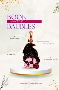 Book Baubles are my unique way to dress up anything the charm can clip to! They can be zipper finders, stitch finders, wine glass charms, add ons for an existing charm bracelet, boot charms…really anything! Unlike other charms, I make my Book Baubles with a tiny, sturdy split ring to ensure the lobster claw doesn’t pull off your charm.